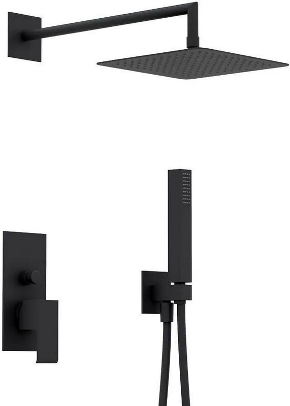 Комплект встр. смесителя для ванны/душа (смеситель с внешней и встр.частью, лейка, шланг, верхний душ с кронштейном, излив), цв.черный ZZ