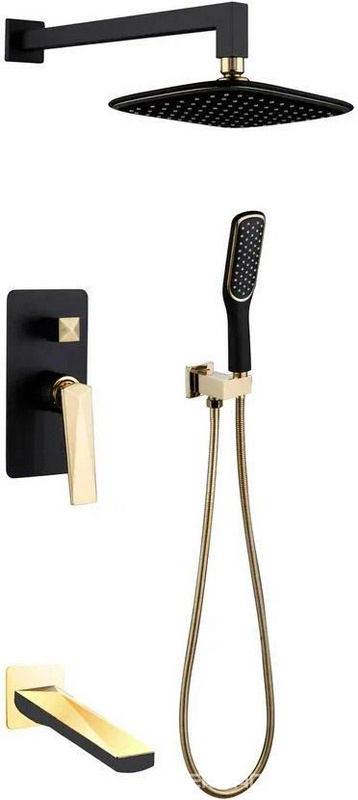 Смеситель встроенный 384-B-2 + верхний душ + ручной душ ЧЕРНЫЙ+ЗОЛОТО, ZZ