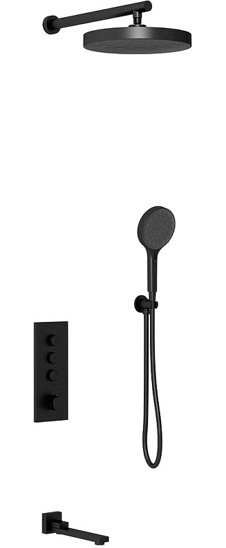 Душевой к-т: смес-термостат с перекл., встр.в стену, верхн.душ, ручн.душ, шланг, кронштейн, шланговое подсоед, (цв.черный мат)Vincea