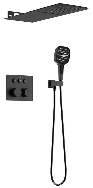 Душевой к-т: смес-термостат с перекл., встр.в стену, верхн.душ, ручн.душ, шланг, кронштейн, шланговое подсоед, (цв.черный мат)Vincea