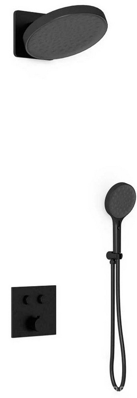 Душевой к-т: смес-термостат с перекл., встр.в стену, верхн.душ, ручн.душ, шланг, кронштейн, шланговое подсоед, (цв.черный мат)Vincea