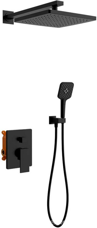 Душевой к-т: смеситель встр.в стену, верхний душ 255х255мм, ручн.душ, шланг, кронштейн совмещ. со шланг.подсоед., (цв.черный матовый), Next ZZ
