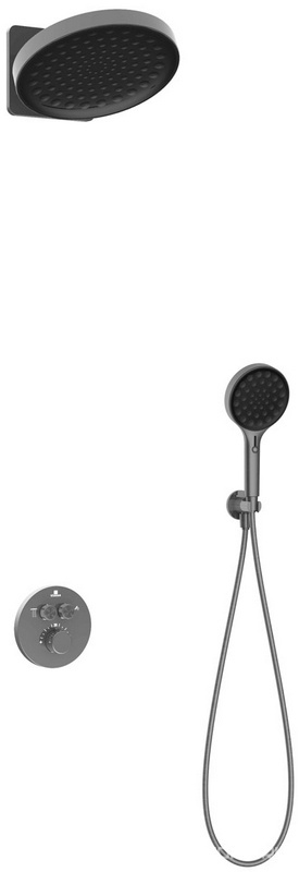 Душевой к-т: смес-термостат встр.в стену, верхний душ 250мм, ручн.душ, шланг, кронштейн совмещ. со шланг.подсоед., (цв.вороненая сталь), Inspire ZZ
