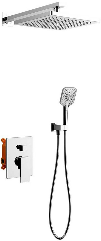 Душевой к-т: смеситель встр.в стену, верхний душ 255х255мм, ручн.душ, шланг, кронштейн совмещ. со шланг.подсоед., (цв.хром), Next ZZ