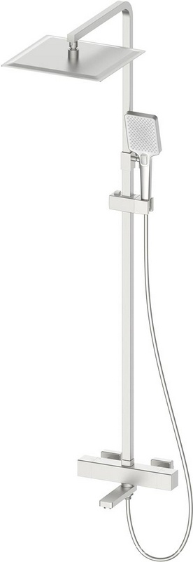 Смеситель-термостат для ванны(душа), со стационарным верхн.душем 30х20см., душевая лейка, шланг в компл., (цв.брашированный никель), D-LINE ZZ
