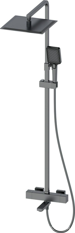 Смеситель-термостат для душа, со стационарным верхн.душем 30см., душевая лейка, шланг в компл., (цв.вороненая сталь), Inspire