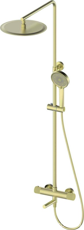 Смеситель-термостат для ванны(душа), со стационарным верхн.душем d30см., душевая лейка, шланг в компл., (цв.матовое золото), Y-LINE ZZ