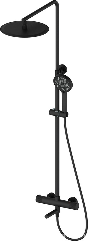 Смеситель для душа (термостат) со стационарным верхним душем 230х170мм, ручной душ,шланг в компл, (цв.мат.черный), Vernis Shape Showerpipe 230 1jet ZZ