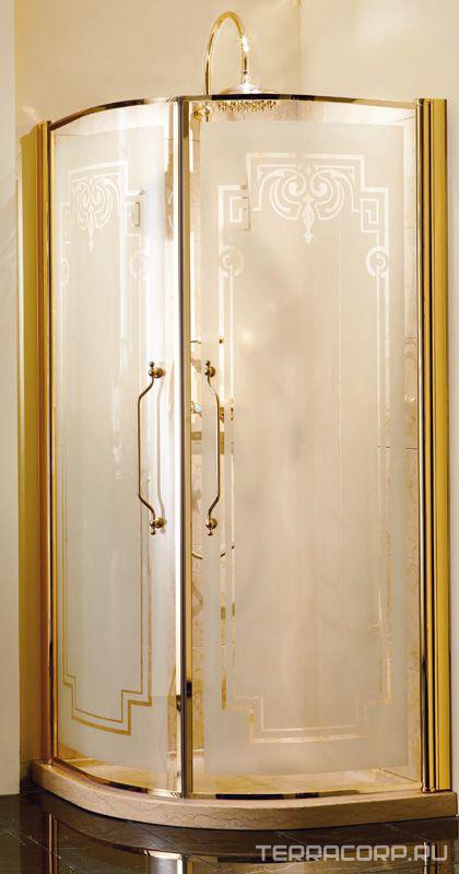 Двери д/душа, распашные 80х80хh185см, полукругл. профиль бел/зол., стекло комбинир. матовое/прозр.декор Londra Z XXZ