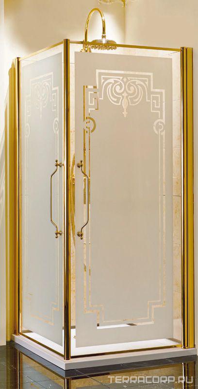 Дверь д/душа 90х90хh185см, петли слева, для комплект. с бок.элементом,квадратн. проф. бел/бронза, стекло комбинир.матовое/прозр.декор Londra Z XX XXZ