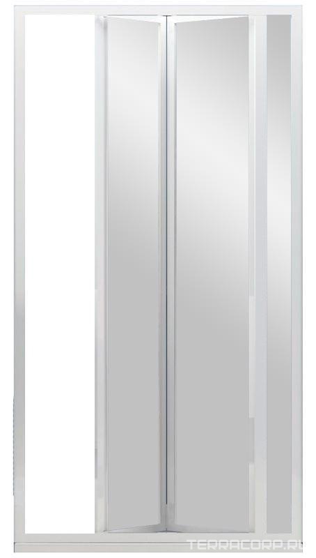 Душевая дверь 95*190 двустворчатая , распашные створки, профиль глянцевый хром, стекло прозрачное ZZ