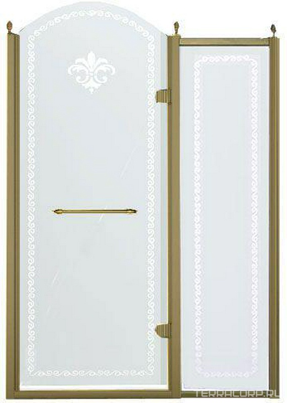 Дверь для душа, в нишу или для боковой стенки, 100(96-102)хh200см, правая/левая, (стекло матовое с прозр. декором, профиль цв.бронза), Villa Borchese