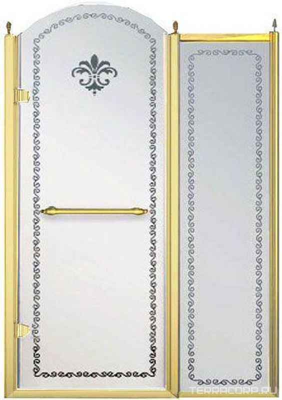 Дверь для душа, в нишу или для боковой стенки, 90(86-92)хh200см, правая/левая, (стекло матовое с прозр. декором, профиль цв.золото), Villa Borchese ZZ