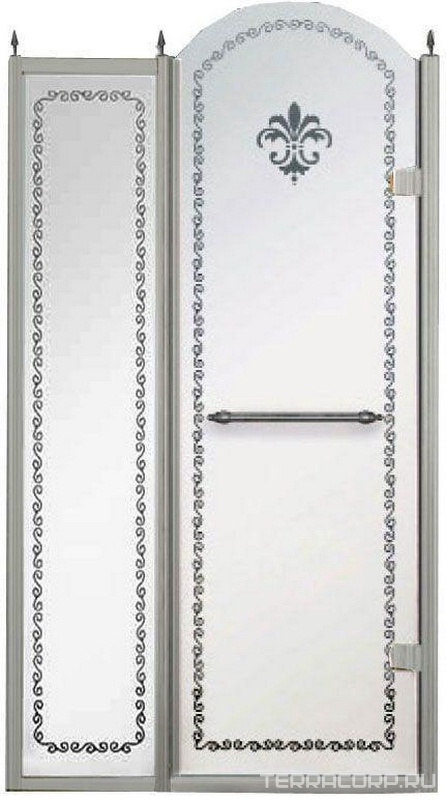 Дверь в нишу 1000хh2118мм, с неподв. сегментом, "Правая" петли (вход 550мм) справа, (стекло матовое с прозрачным узором, 8мм, фурн/хром), Retro XX