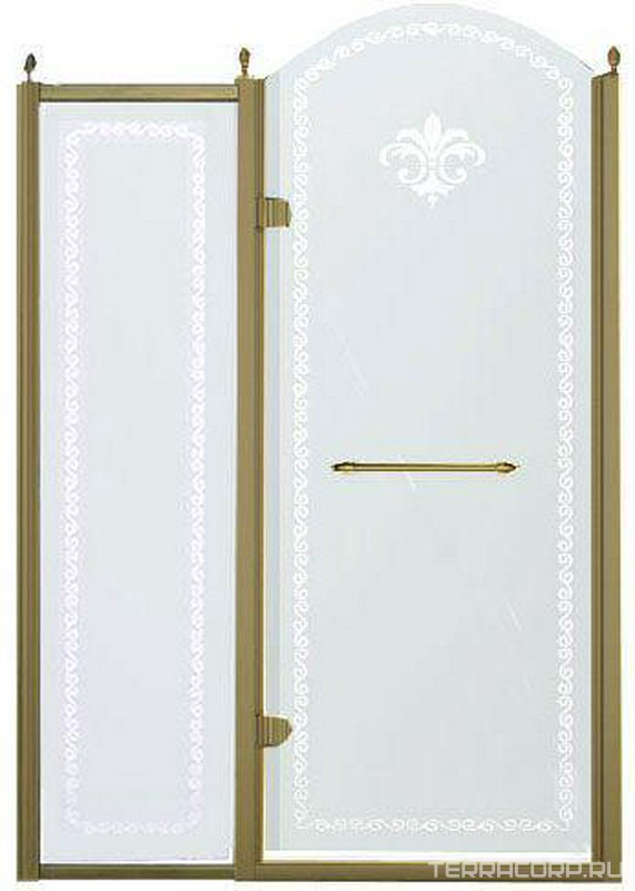 Дверь для душа, в нишу или для боковой стенки, 100(96-102)хh200см, правая/левая, (стекло матовое с прозр. декором, профиль цв.бронза), Villa Borchese