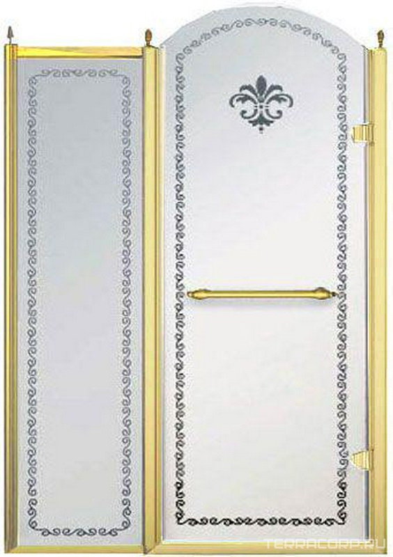 Дверь для душа, в нишу или для боковой стенки, 90(86-92)хh200см, правая/левая, (стекло матовое с прозр. декором, профиль цв.золото), Villa Borchese ZZ