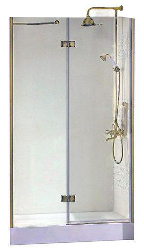 Дверь в нишу 900хh1950мм, с неподв. сегментом, "Левая" (вход 585мм) справа, (стекло прозрачное, 8мм, фурнит. цв.золото), Magic XX