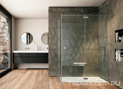 Дверь распаш.с неподв.сегментом, в нишу, 1000хh1950мм,вход 555мм, петли справа, (стекло 6мм,GL прозрачное, фурн.05 полир.алюм) СOMBI ZZ