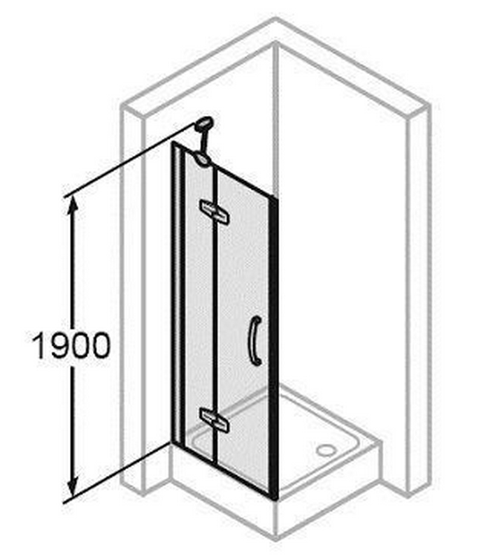 Дверь распашн. с неподв.сегм. и доп.элем. для бок.стенки, 100хh190см, петли слева, вход 68см, проф.хром,стекла 6мм прозр., Aura 4-уг. ZZ