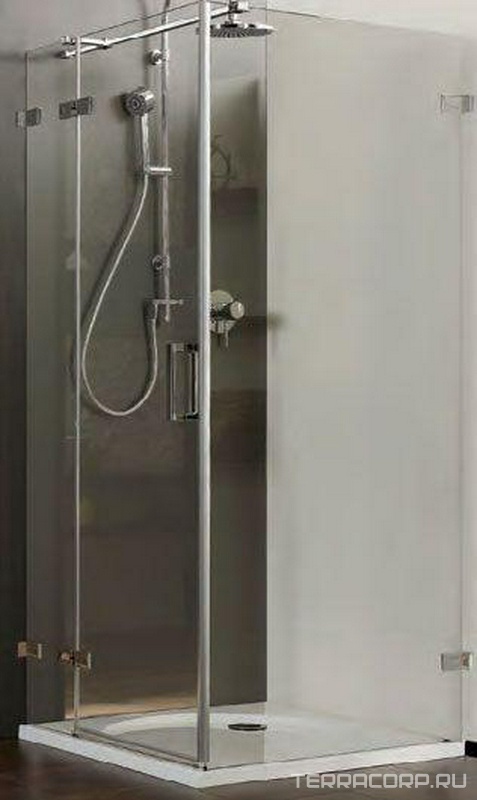 Дверь расп.с неподв.сегм. 1000хh2000мм,вход 665мм,для бок.стенки,петли,неподв.сегм.слева(пр.алюм.хр.эфф, ст. 8мм прозр.ShowerGuard-Klarglas) MK 880 XX