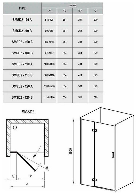 Душевая дверь SMSD2-90 B-R(правая), прозрачное стекло, хром профиль,одностворчатая, с установочным комплектом ZZ