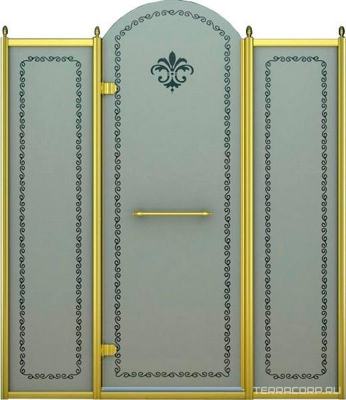 Дверь в нишу 1300x2118мм, (1275-1325)xh2118, с двумя неподв. сегмент, "Левая" петли лев(вход 560мм), (стек/мат с прозр/узор, 8мм, фурн/зол),Retro ZZ