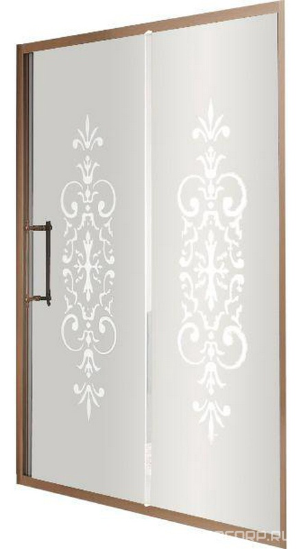 Дверь для душа, в нишу или для боковой стенки, 100(96-102)хh200см, правая/левая, (стекло матовое с прозр. декором, профиль цв.бронза), Villa Borchese