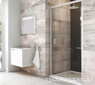 Дверь в нишу 1200(1180-1220)хh2000мм, правая/левая, сдвижная дверь, вход 475мм, (стекло прозр.Idrorepellente 8мм, фурнит. цв.хром), Lux Soft ZZ