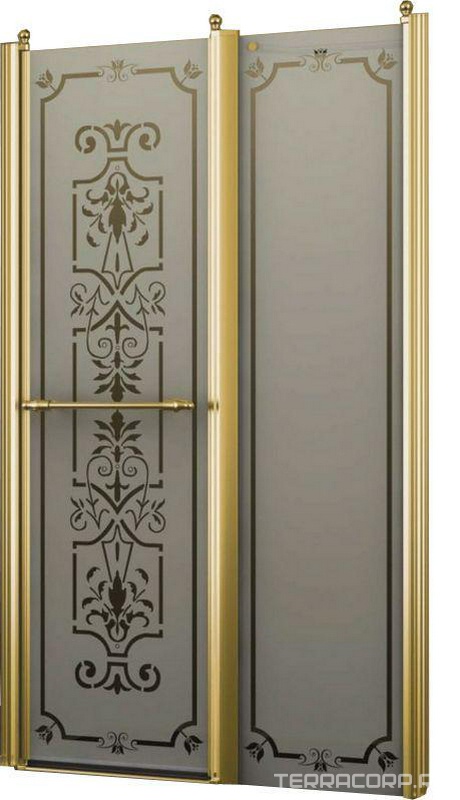 Дверь в нишу 1200хh1950мм, распашная во внутрь и наружу, с неподв.сегм., вход 521мм, правая/левая, (профиль цв. золото, стекло 6мм мат.с прозр.рисZZ