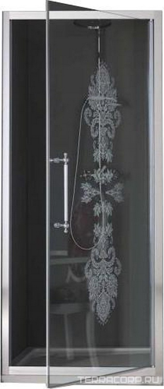 Дверь для душа, в нишу или для боковой стенки, 90(86-92)хh200см, правая/левая, (стекло матовое с прозр. декором, профиль цв.хром), ZZ Samo Villa Borchese B7305 ULU R6