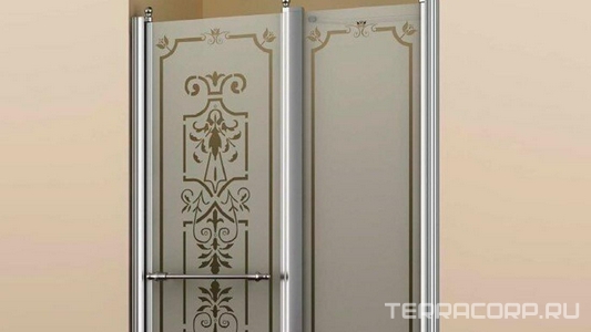 Дверь в нишу 900(865-935)хh1950мм, открывание наружу, вход 721мм, правая/левая, (профиль цв.золото, стекло 6мм мат.с прозр.рис), Bristol ZZ