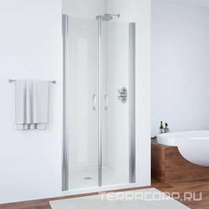 Душевая дверь 90*190 двухстворчатая распашная, открывается наружу и внутрь, профиль матовый хром, стекло сатин, БЕЗ покрытия ZZ