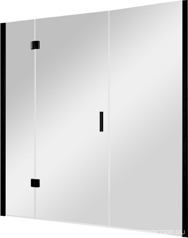 Дверь для душа в нишу, 900/1000хh2000мм, распашная с неподв.сегментом, правая/левая, (стекло 8мм, прозрачная, фурн.цв.черный матовый), Extra ZZ