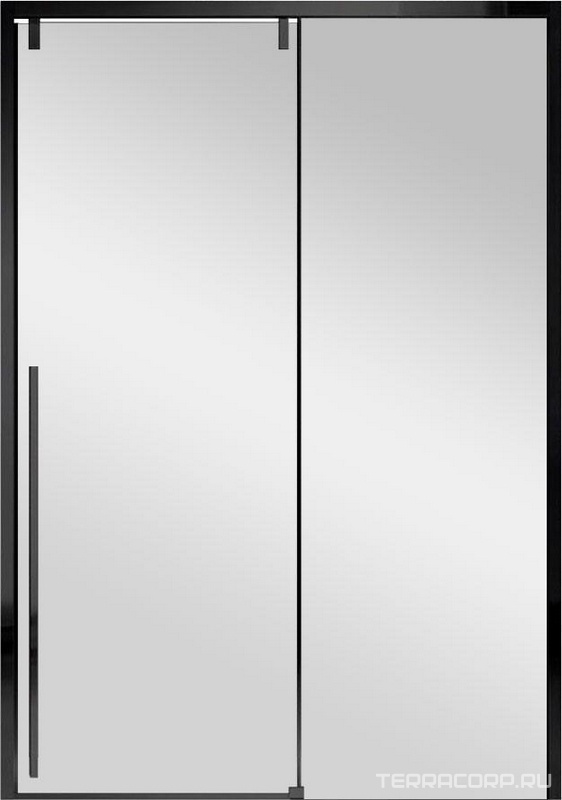 Дверь для душа, в нишу 1200хh1950мм, раздвижн., 1 дверь, 1 неподв.секц, правая/левая, (стекло прозрачное 5мм, фурн.цв.черный матовый), City ZZ