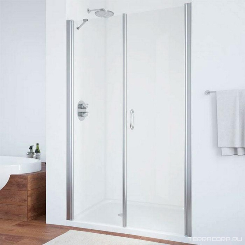 Дверь в нишу EP-F-2, 1120-1170x1890 мм, ПРАВАЯ, распашная с неподвижным элементом, матовый хром, стекло прозрачное ZZ