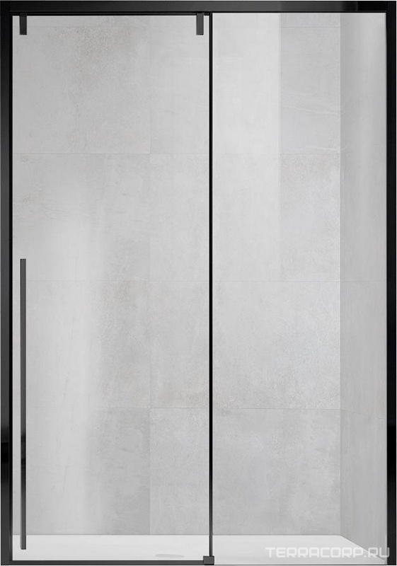 Дверь для душа, в нишу 1200хh1950мм, раздвижн., 1 дверь, 1 неподв.секц, правая/левая, (стекло прозрачное 5мм, фурн.цв.черный матовый), City ZZ