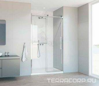 Дверь для душа, в нишу 1200хh1900мм, раздвижная, 1 дверь, 1 неподв.секция, правая/левая,(стекло прозрачное 8мм Easy Clean,фурн.цв.черный),Como Soft ZZ