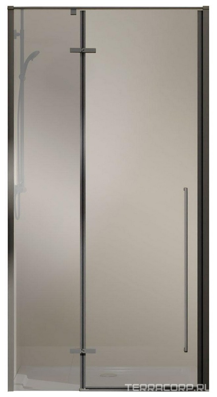 Дверь для душа в нишу, 912-1012хh2000мм, распашная с неподв.сегментом, правая/левая, (стекло 8мм, тонированное, фурн.цв.черный матовый), Extra