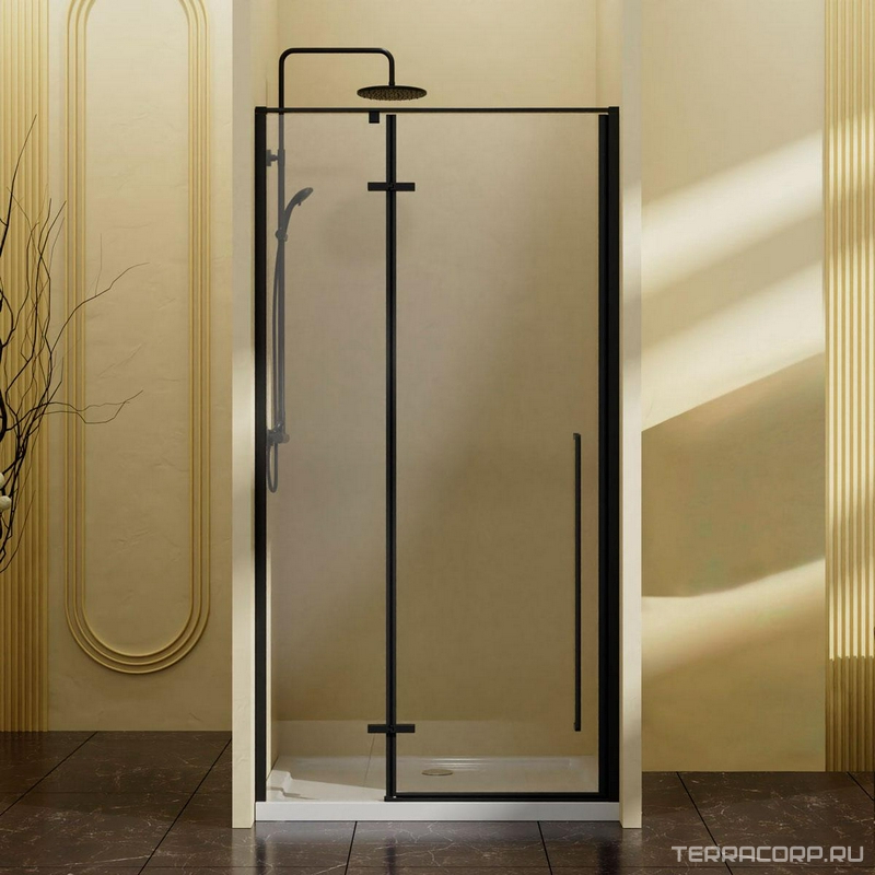Дверь для душа в нишу, 1000хh1950мм, распашная с неподв.сегментом, правая/левая, (стекло 6мм прозрачное, фурн.цв.черный матовый), Slim-N ZZ
