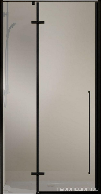 Дверь для душа в нишу, 912-1012хh2000мм, распашная с неподв.сегментом, правая/левая, (стекло 8мм, тонированное, фурн.цв.черный матовый), Extra