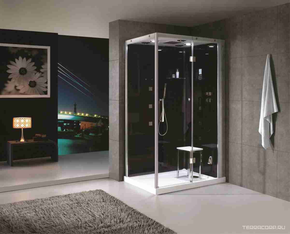Душевая кабина AG8079R 125х90x225 GL09 переднее стекло - тонирован., задняя стенка - белая, профиль серебристый ZZ