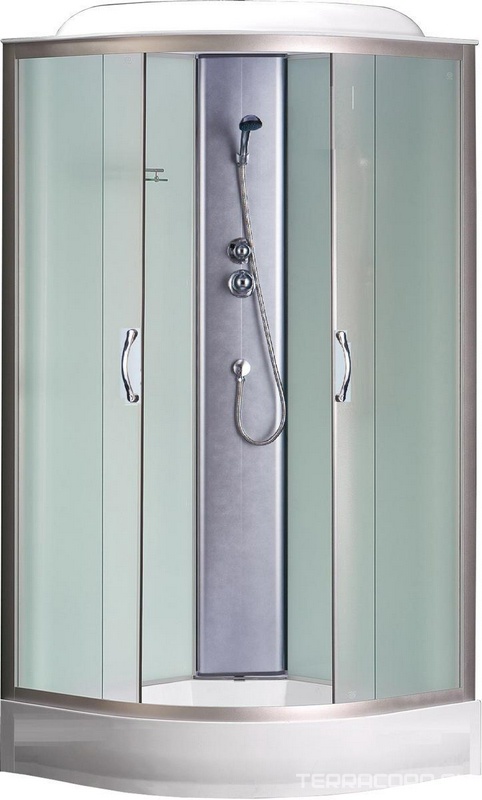 Душевая кабина90х90х215, поддон 13 см, с крышей, четверть круга, стекло матовое 4мм, поддон 13 см, профиль хром, ZZ