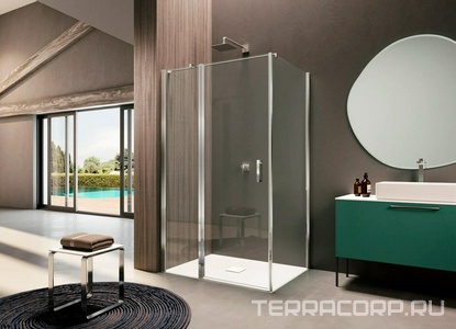 Душ каб. (1/2 душ.кабины!!! прав/лев) расп. дверь с непод.сегм., 1/4 круга, R=550, (90х90хh191см, стекло 6мм, GL проз., 28 arg/cr, мат.хр/хр) Vario ZZ