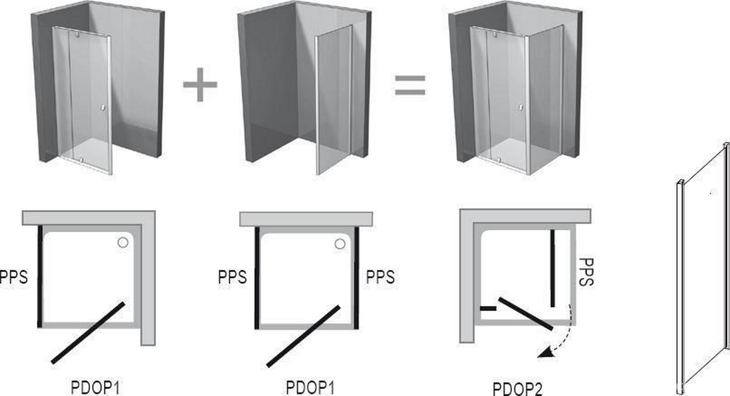 Неподвижная стенка PPS - 100, профиль сатин, стекло прозрачное, с установочным комплектом ZZ