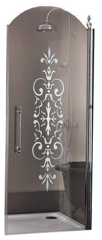 Стенка боковая для душевой двери, 90(87-90)хh200см, правая/левая, (стекло матовое с прозр. декором, профиль цв.бронза), Villa Borchese ZZ