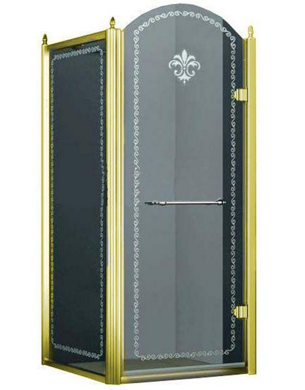 Душевой уголок 900х900хh2116мм, квадрат, "Правый" распаш. дверь справа, с неподв.стенкой (стекло прозрачное с мат/узором, 8мм, фурн/золото), Retro XX