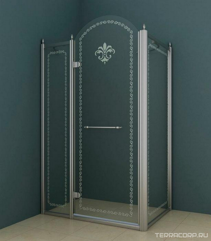 Душевой уголок 1000х1000хh2118мм, квадрат, "Левый" распаш. дверь слева, с неподв.стенкой (стекло прозрачное с мат/узором, 8мм, фурн/.хром), Retro ZZ