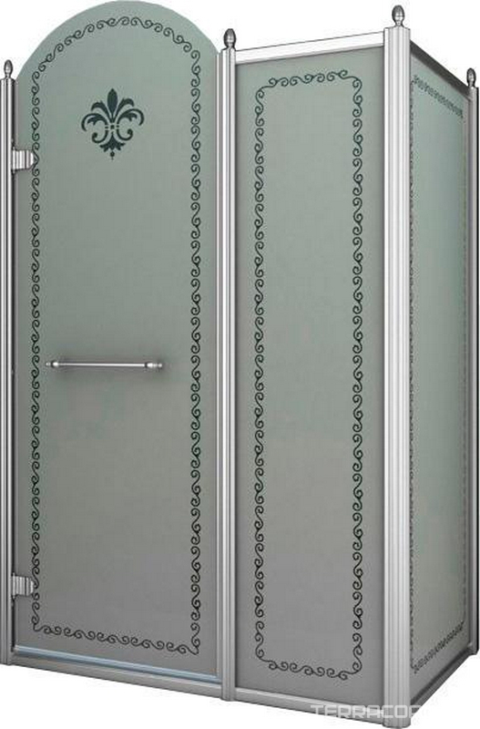 Душевой уголок 1000х1000хh2118мм, квадрат, "Левый" распаш. дверь слева, с неподв.стенкой (стекло матовое с прозр/узором, 8мм, фурн/хром), Retro ZZ