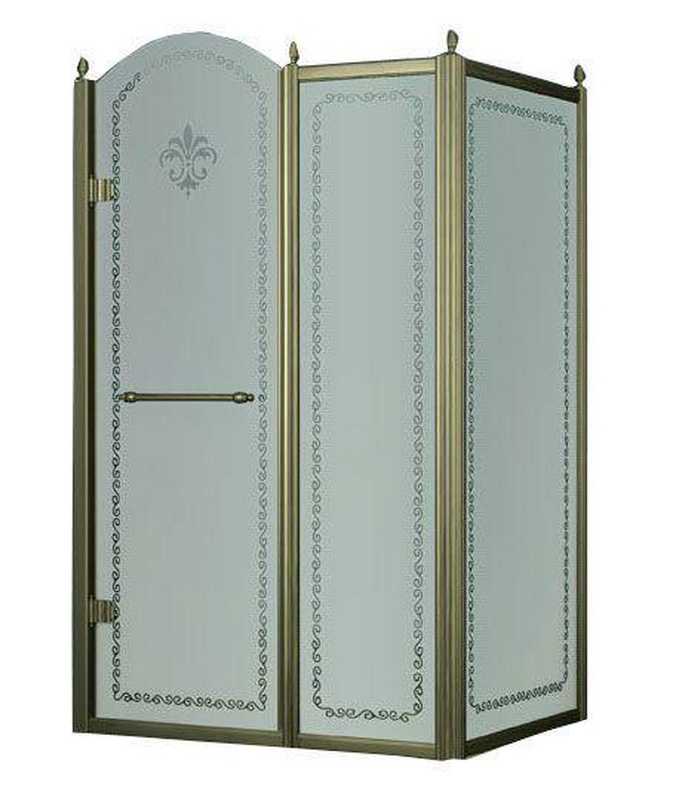Душевой уголок 1000х1000хh2118мм, квадрат, "Левый" распаш. дверь слева, с неподв.стенкой (стекло прозрачное с мат/узором, 8мм, фурн/бронза), Retro ZZ