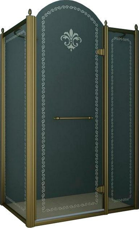 Душевой уголок 1000х1000хh2118мм, квадрат, "Правый" распаш. дверь справа, с неподв.стенкой (стекло прозрачное с мат/узором, 8мм, фурн/бронза) Retro ZZ